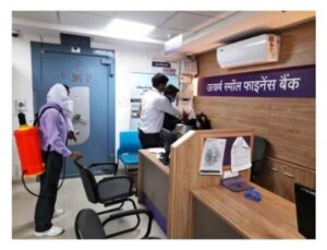 उत्कर्ष स्माल फाइनेन्स सिविल लाइन शाखा -टीम एस के इंटरप्राइजेज कीट नियंत्रण सेवा प्रदान करते हुए